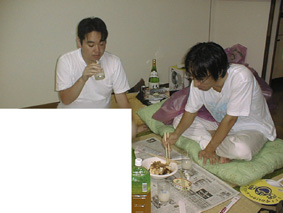 ・d56さん宅に戻り、酒盛りを行う。お酒は今日買ってきた物で、つまみはd56さんの家にあった缶詰とコンビニで買ってきたもの(ちなみにコンビニは駅前はないそうです。近くには有るそうですが)。私は少し酒を飲むと直ぐに寝てしまいました。